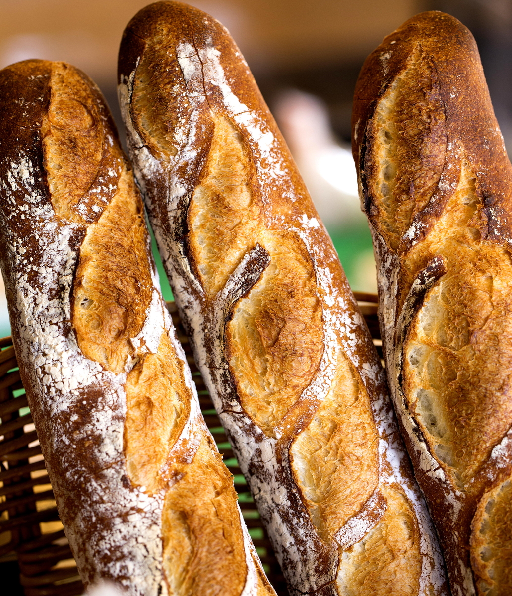 グリム一番人気の『バゲット』です。 もちろん化学合成物は無添加、動物性複合物も一切使用せず、粉の旨味を最大に引き出しています。 当店の製造拠点である亀岡市の水は、非常に美味しく国内稀にみる弱酸性硬水です。また天然酵母の乳酸菌による乳酸作用に伴って、生地が程よく酸性よりに仕上がっている為、雑菌が抑えられ日持ちするパンとなっています。 本来、化学合成物を使用しなくても、先人の知恵のおかげで、美味しく日持ちのするパンが出来上がるのです。